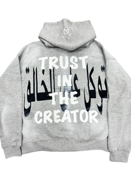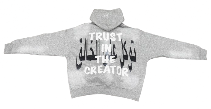 Crafted from a premium 80/20 cotton-poly blend, this hoodie delivers both structure and comfort. The distressed “Trust in the Creator” print — in English and Arabic — gives it a vintage edge while carrying deep meaning. A reminder that real confidence comes from faith, not fear.